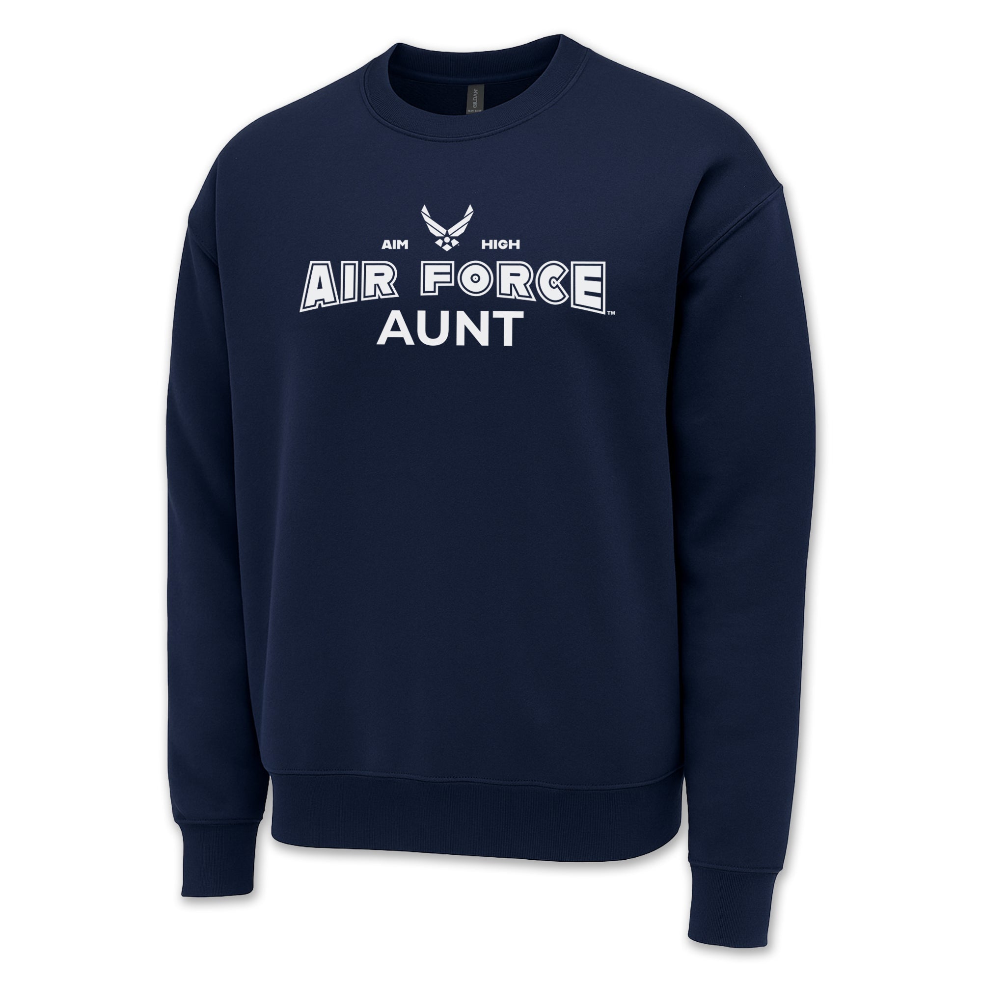 Show everyone how proud you are to represent your niece/nephew in the Air Force with the Air Force Aunt Crewneck!
