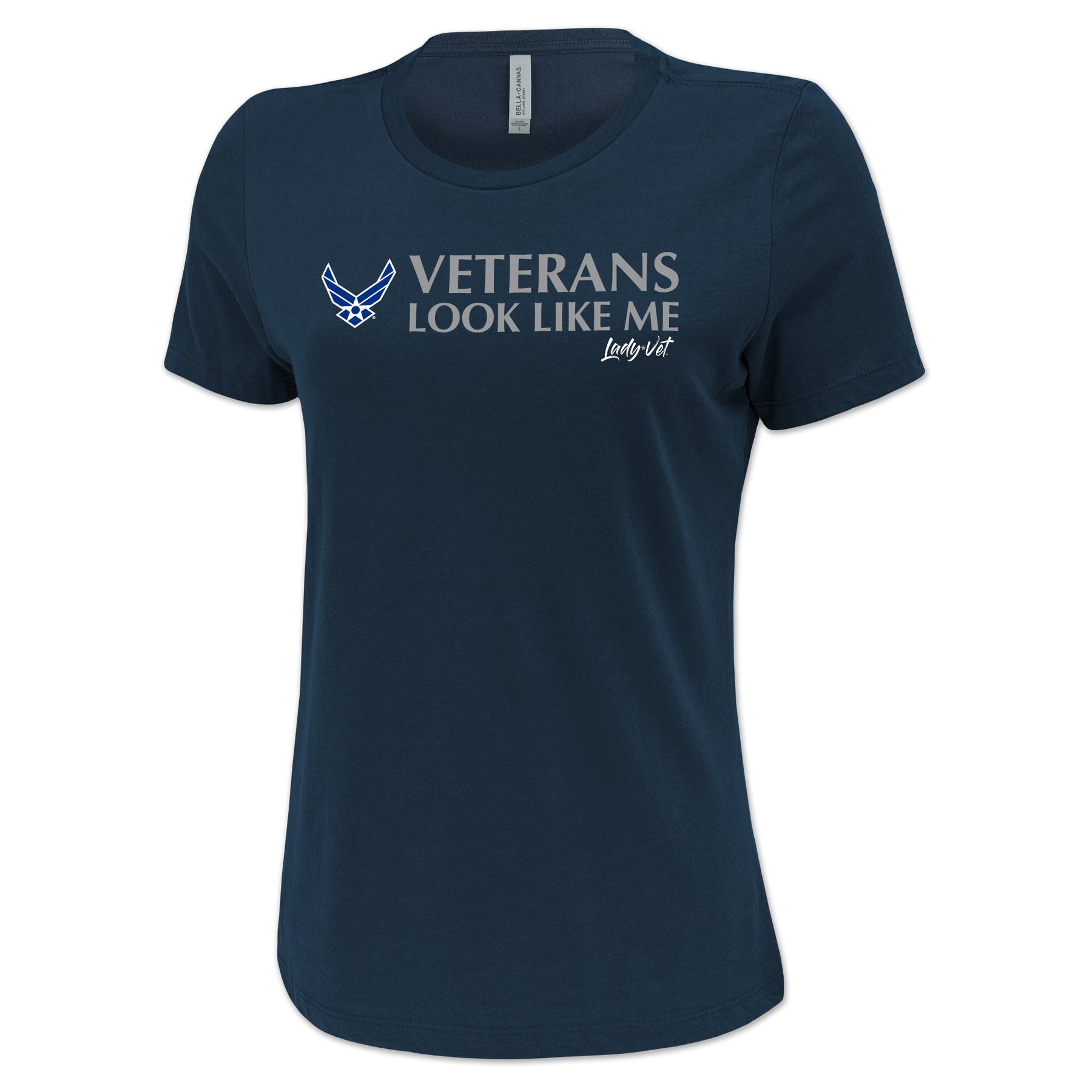 Lady Vet is a woman-owned, Veteran-owned brand created specifically to challenge public assumption of what a Veteran looks like. Show your support or wear it proudly; the Air Force Vet Looks Like Me Ladies T-Shirt!