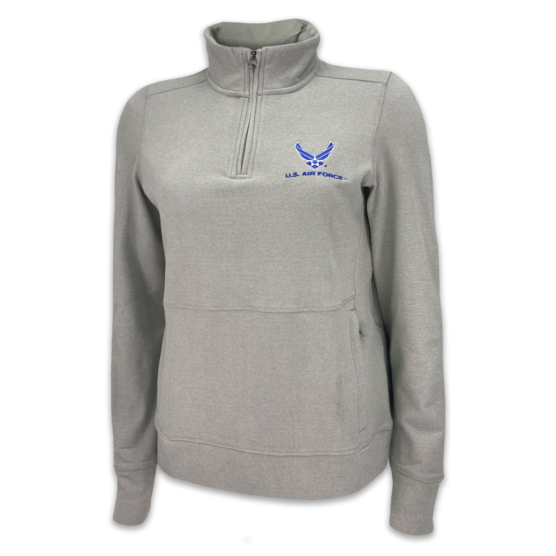 The Air Force Ladies Crush 1/4 Zip Pullover is designed with exceptionally soft fabric for all-day comfort and effortless style. Featuring a flattering fit and embroidered Air Force Wings, it’s perfect for layering or showcasing your Air Force pride in a subtle, elegant way. Stay warm and look great wherever you go!