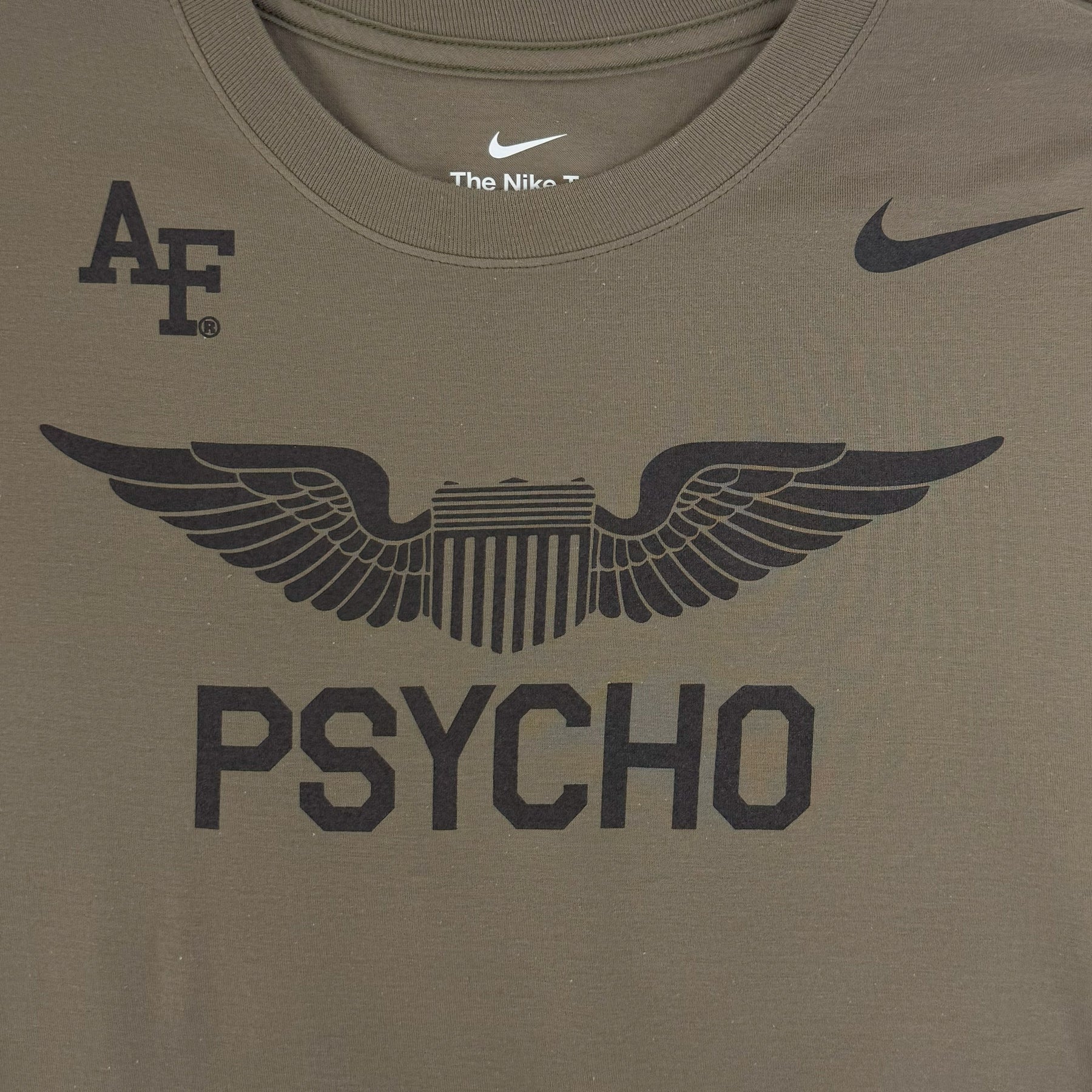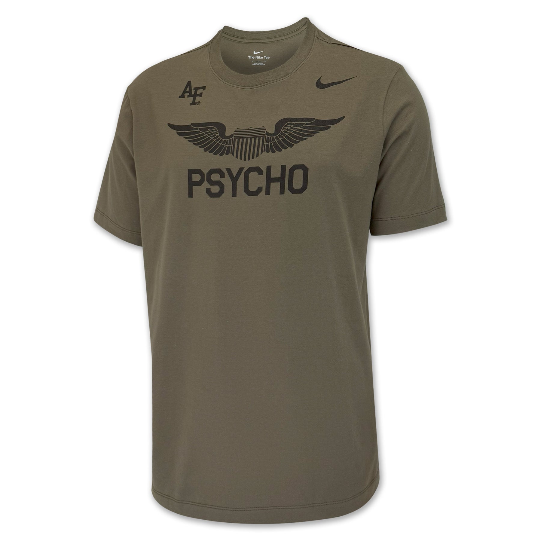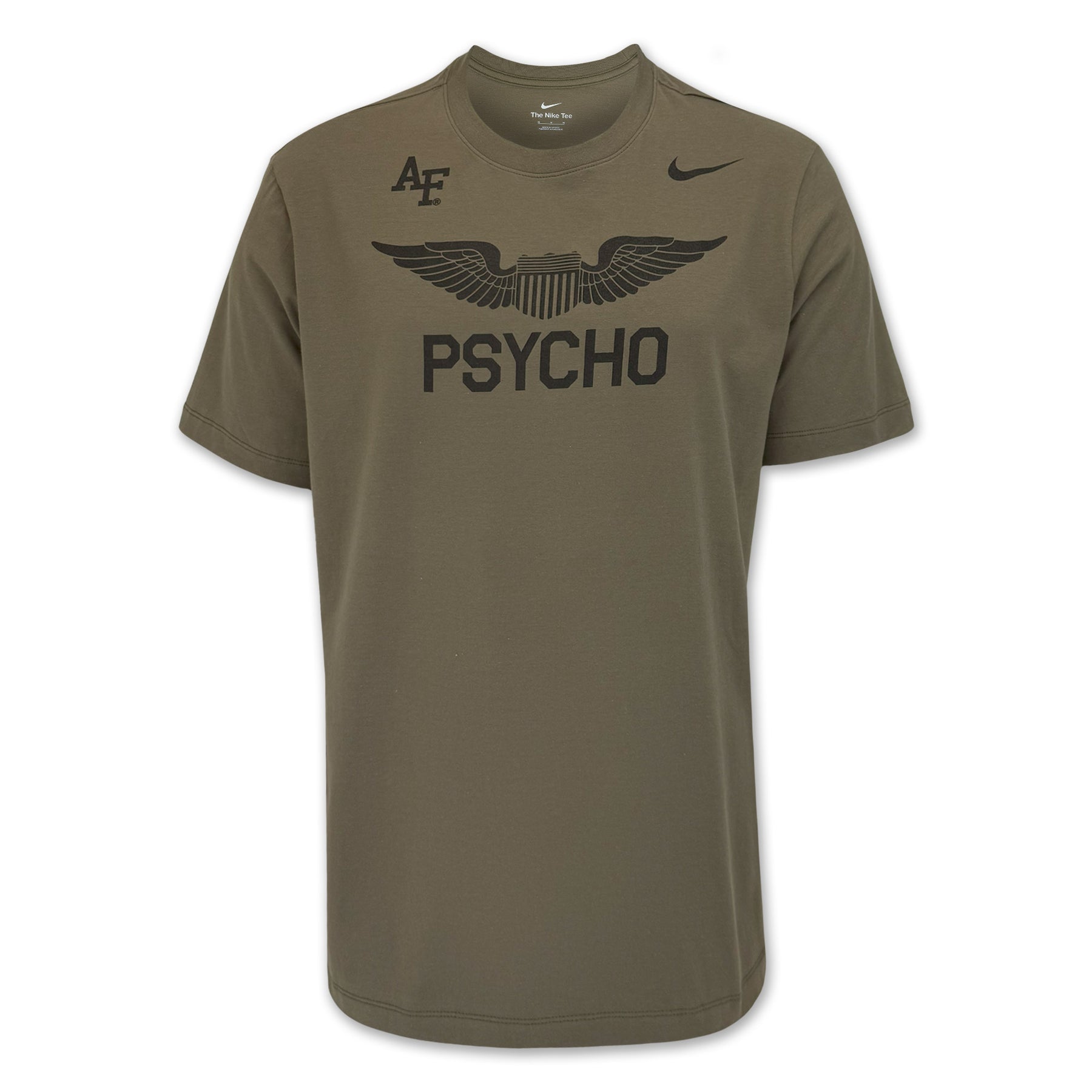 Make a bold statement with the Air Force Nike Rivalry Psycho Core Cotton T-Shirt. Featuring eye-catching graphics and soft cotton fabric, this tee brings comfort and edge to your everyday look. Part of the exclusive Rivalry Collection, it’s built for fans who rep the Air Force with intensity.