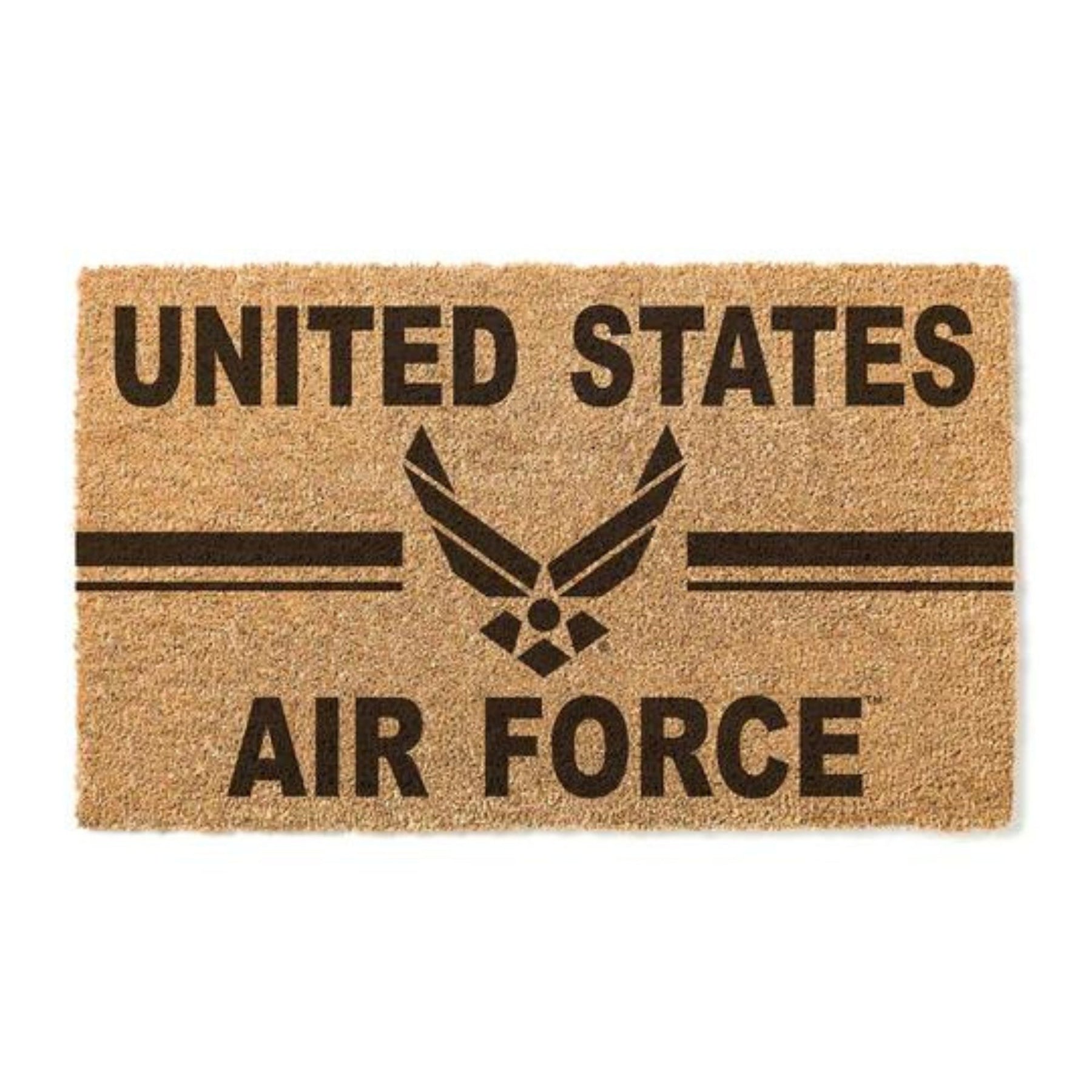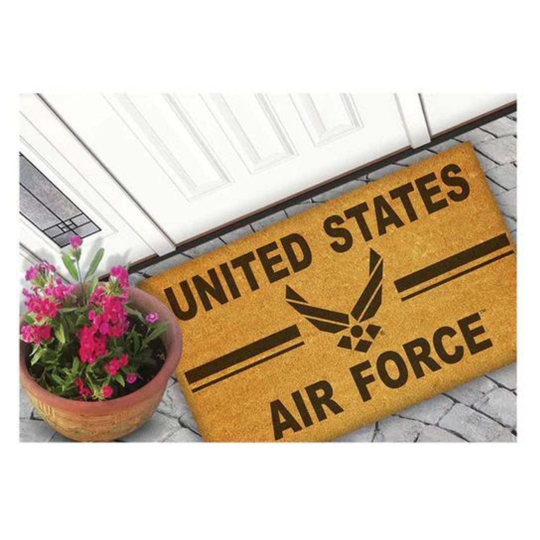 Elevate your entryway or patio and proudly display your American Spirit with our Air Force Wings Stripe Doormat. This uniquely crafted coir doormat combines exceptional design with functionality. Welcome guests in style while celebrating your patriotic pride with this thoughtfully designed doormat!