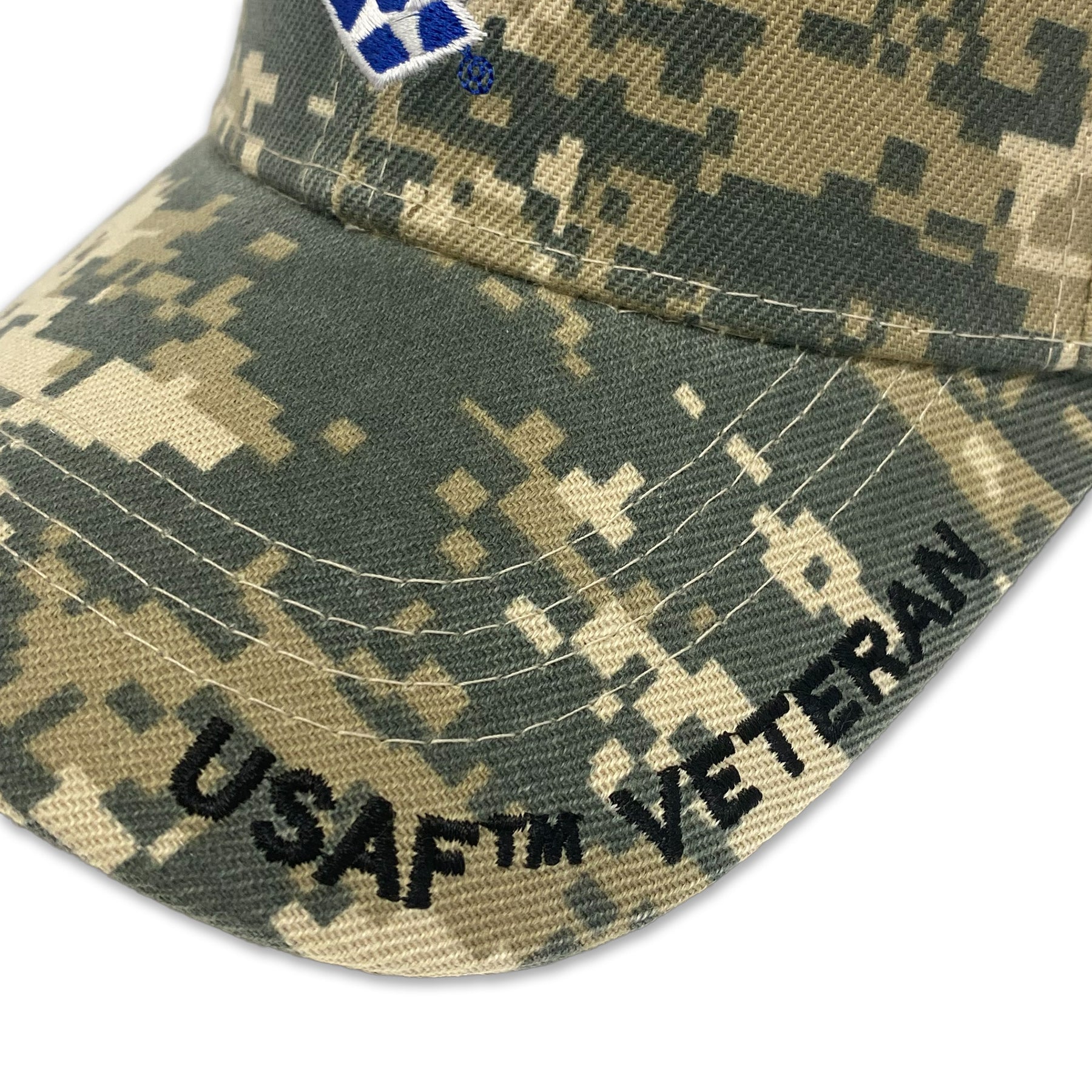 Show your service with pride in the Air Force Wings Veteran Digital Camo Hat. Featuring an embroidered Air Force Wings and “Veteran” design on a rugged digital camouflage pattern, this cap is both meaningful and durable. With an adjustable fit and breathable construction, it’s perfect for everyday wear or special occasions honoring your service.
