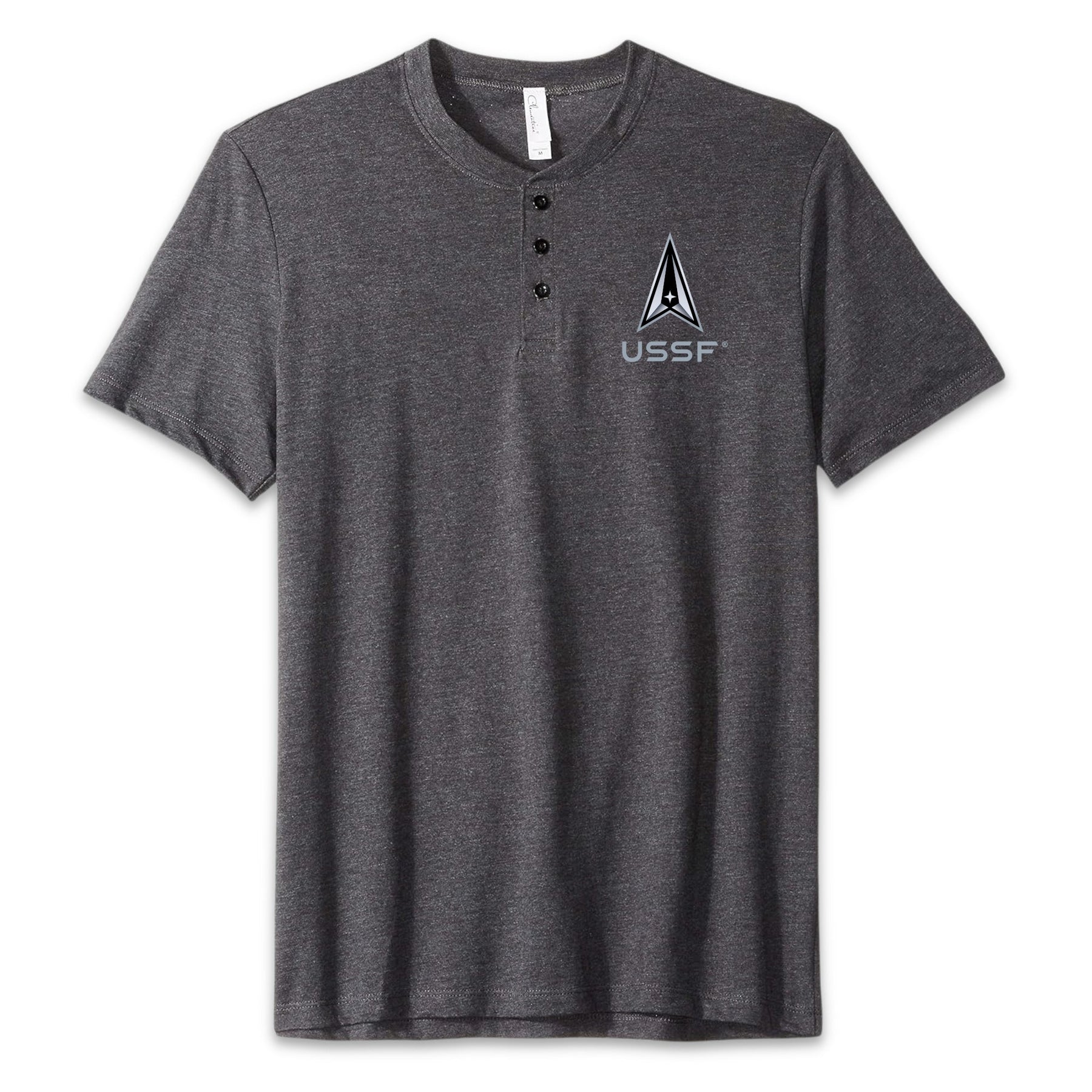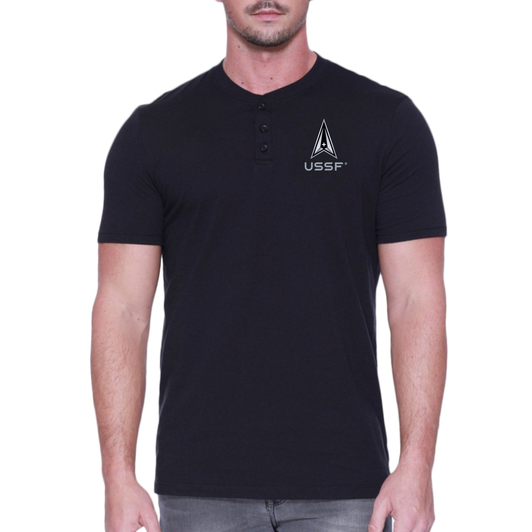 Introducing our Space Force Delta Men's Henley T-Shirt – a classic blend of comfort and pride. This ultra-fine cotton blend features a bold left chest design, making it a stylish choice for those who appreciate the strength and tradition of the United States Space Force!