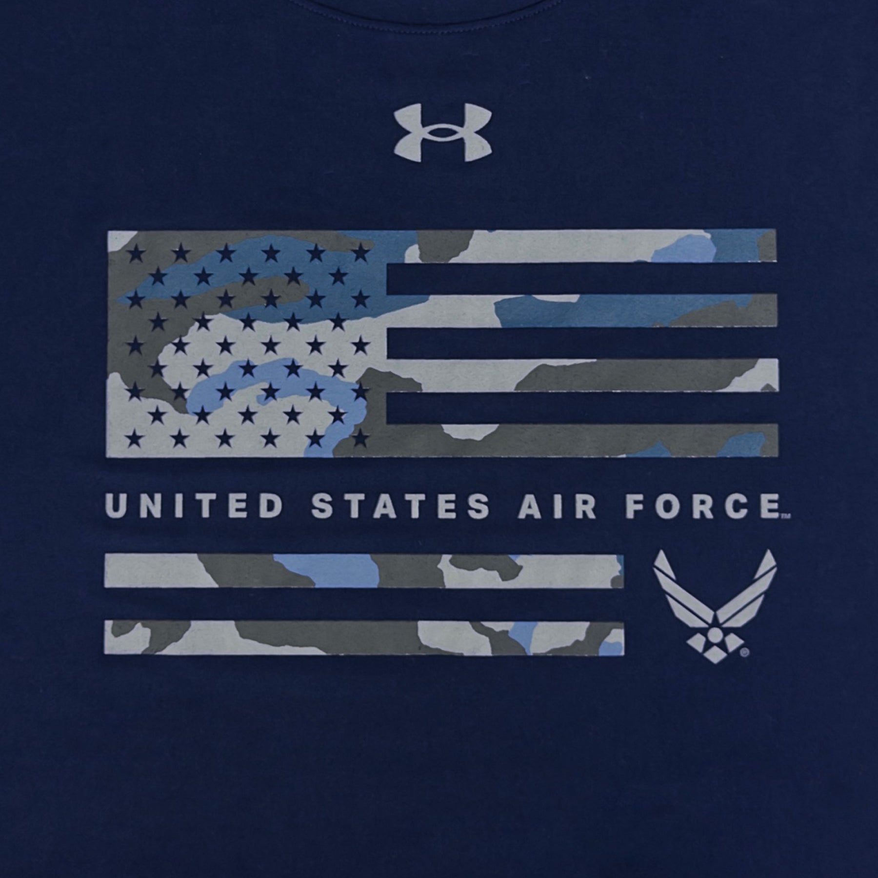 Freshen up you gear with the United States Air Force Under Armour Camo Flag Tech T-Shirt